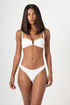 For added versatility, the removable (and adjustable) straps allow you to switch between a secure square neckline or a strap-free style—perfect for tanning. Finished with a luxe hammered gold U-shaped centerpiece, we know you're going to love this bikini top as much as we do.